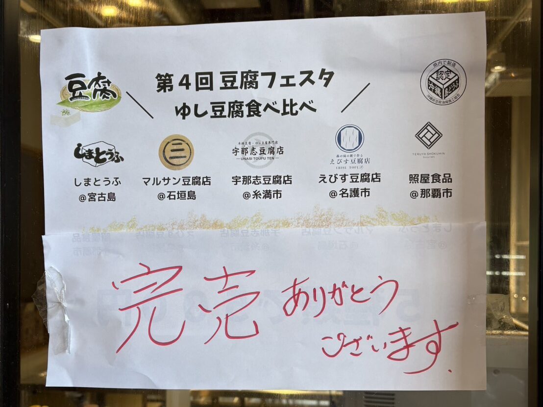 県内各地からたくさんのお客様にご来場いただき、人気企画の『ゆしどうふ食べ比べ』は昨年よりも早いペースで完売となりました‼️