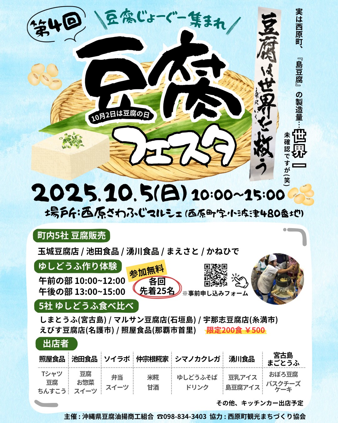 お知らせ2025年10月7日第4回 豆腐フェスタ@西原さわふじマルシェ